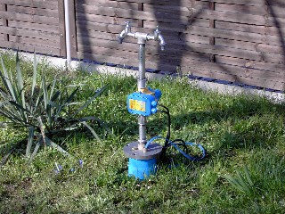 4.) Automatische Gartenwasserversorgung - Hauswasserpumpe mit Durchflußschalter. Die Pumpe schaltet ein, sobald ein Wasserhahn geöffnet wird und bleibt in Betrieb, bis die Wasserentnahme eingestellt wird. Diese Bauform ist geeignet, wenn eine konstante Wassermenge benötigt wird.